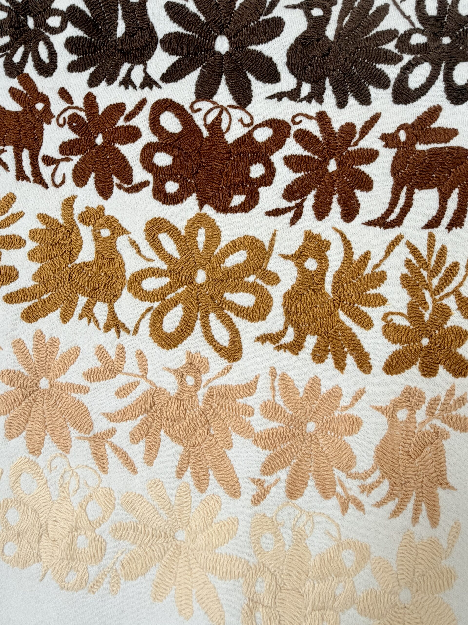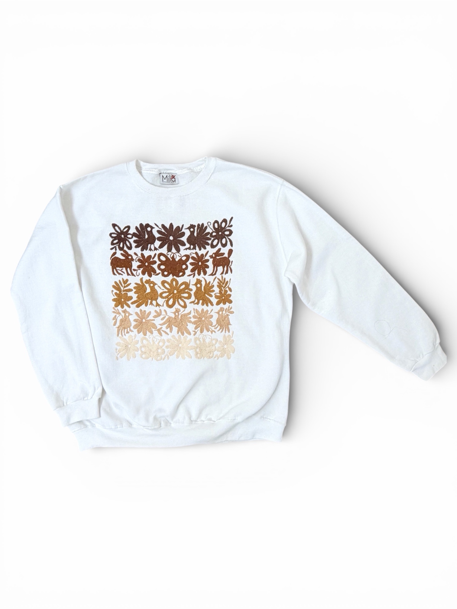 Sudadera talla grande unisex color blanco elaborada con tela afelpada y con bordado tenango hecho a mano.